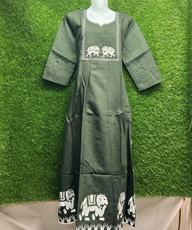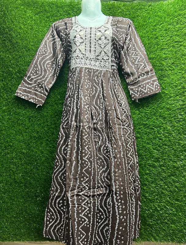 - Brown with white embroidery, Green, Yellow and White Floral Print